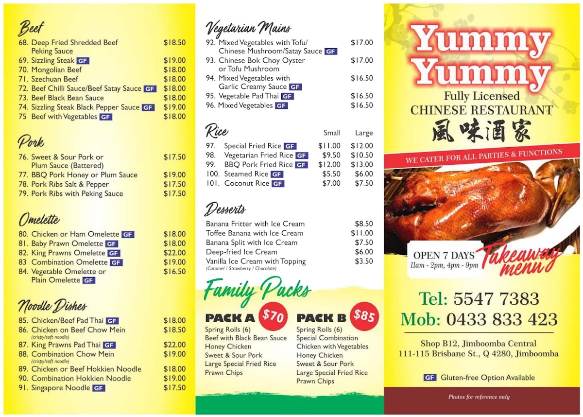 Welcome to Yummy Yummy Chinese Restaurant, located at Shop B12/109 - 115 Brisbane St, Jimboomba QLD. This vibrant eatery offers an extensive menu that features a delightful array of dishes designed to tantalize your taste buds.
